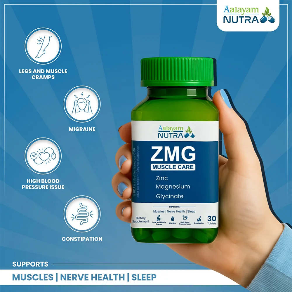 Aalayam Nutra ZMG Muscle Care is a specialized dietary supplement formulated to support the body’s physical and nervous systems. Combining the power of Zinc, Magnesium, and Glycinate, this triple-action blend is designed to combat muscle fatigue, enhance nerve function, and promote deep relaxation. Whether you are dealing with frequent leg cramps, migraines, or sleep disturbances, ZMG provides the essential nutrients needed to restore balance and comfort to your daily life.